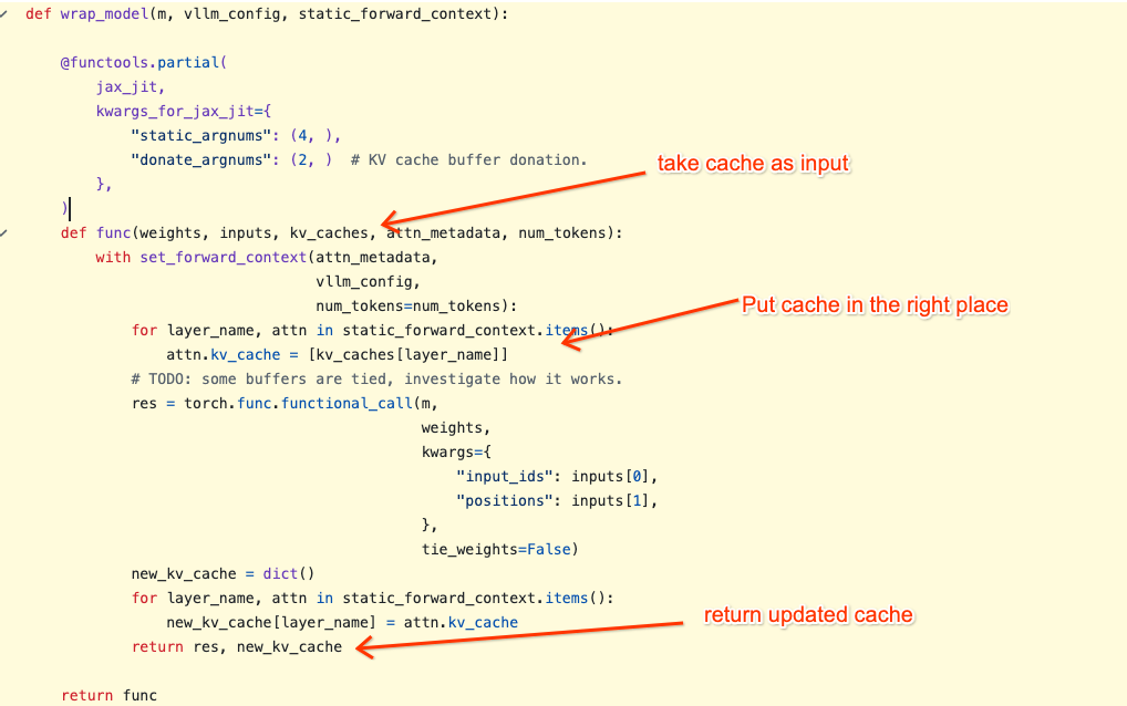 The code that uses the above technique is located at: tpu_inference/models/torchax/torchax_wrapper.py#L55-L83 show below:
